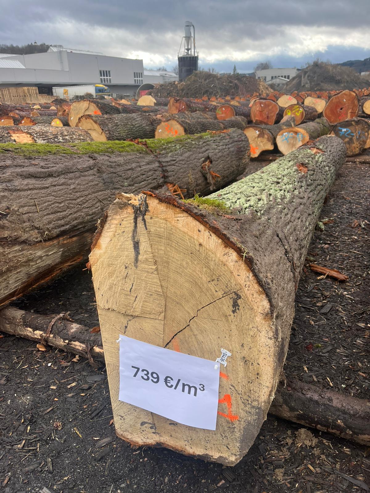 Ač nejsme typickým listnatým regionem, nejkvalitnější dub byl vydražen za 17.921,-Kč/m3 (739,-Eur/m3), jasan za 7.008,-Kč/m3 (289,-Eur/m3) a jilm za 7.760,-Kč/m3 (320,-Eur/m3).